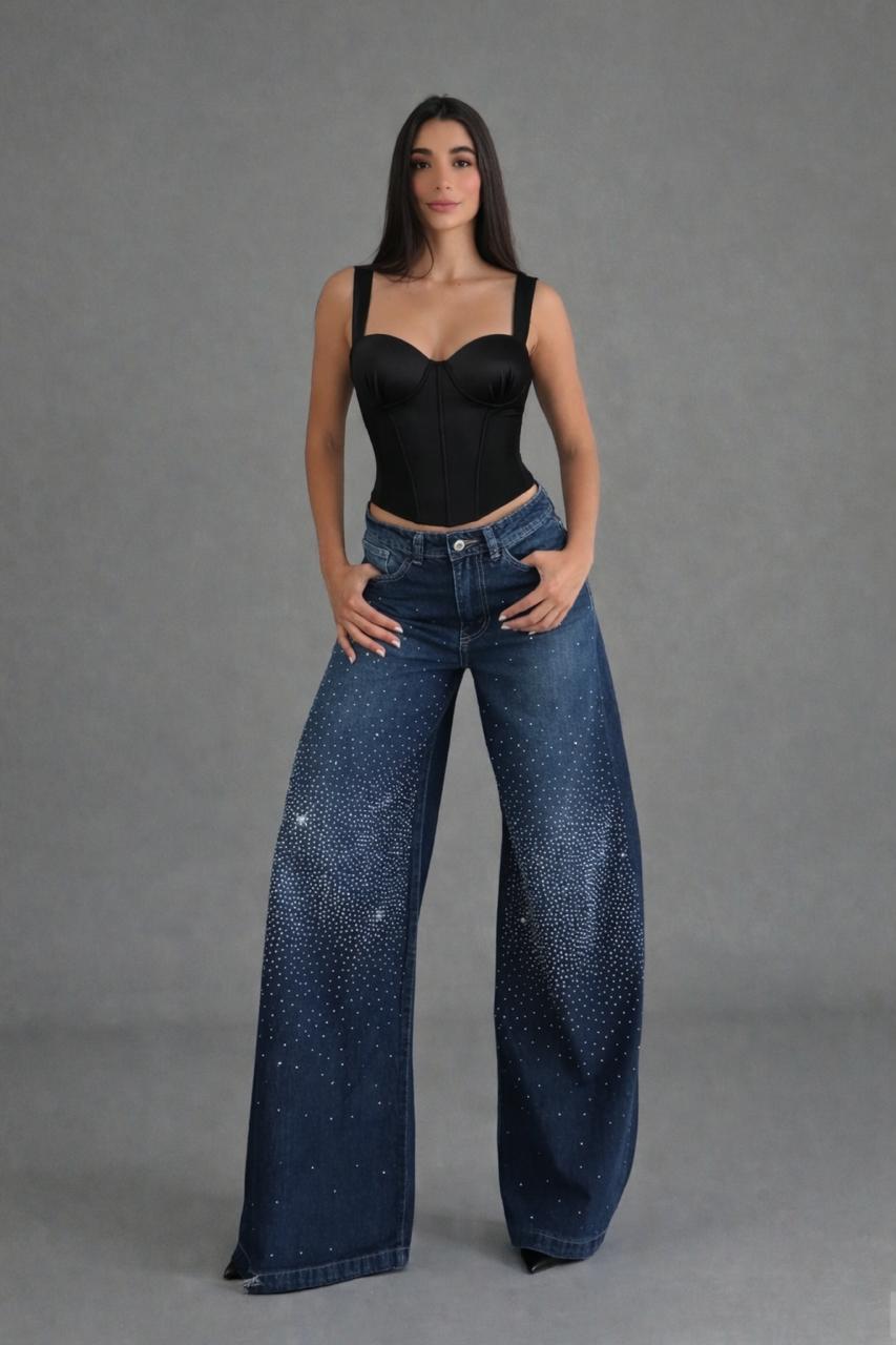 Eleva tu estilo diario con nuestro Jean Glow Azul, la prenda definitiva para quienes buscan un equilibrio entre la comodidad del denim y el glamour de los cristales. Este jean no es solo una prenda básica; es una pieza de declaración diseñada bajo las últimas tendencias de moda urbana y chic.